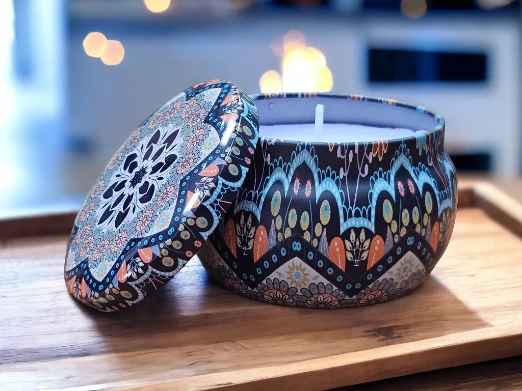 La Lata Mandala Aromática mediana Ø 6,5 cm es mucho más que una simple vela. Con su fragancia envolvente, esta vela aromática es ideal para aromatizar tu hogar, relajarte después de un largo día y meditar en un ambiente tranquilo. Además, su diseño único de mandala decora y luego podés reutilizar la lata.
