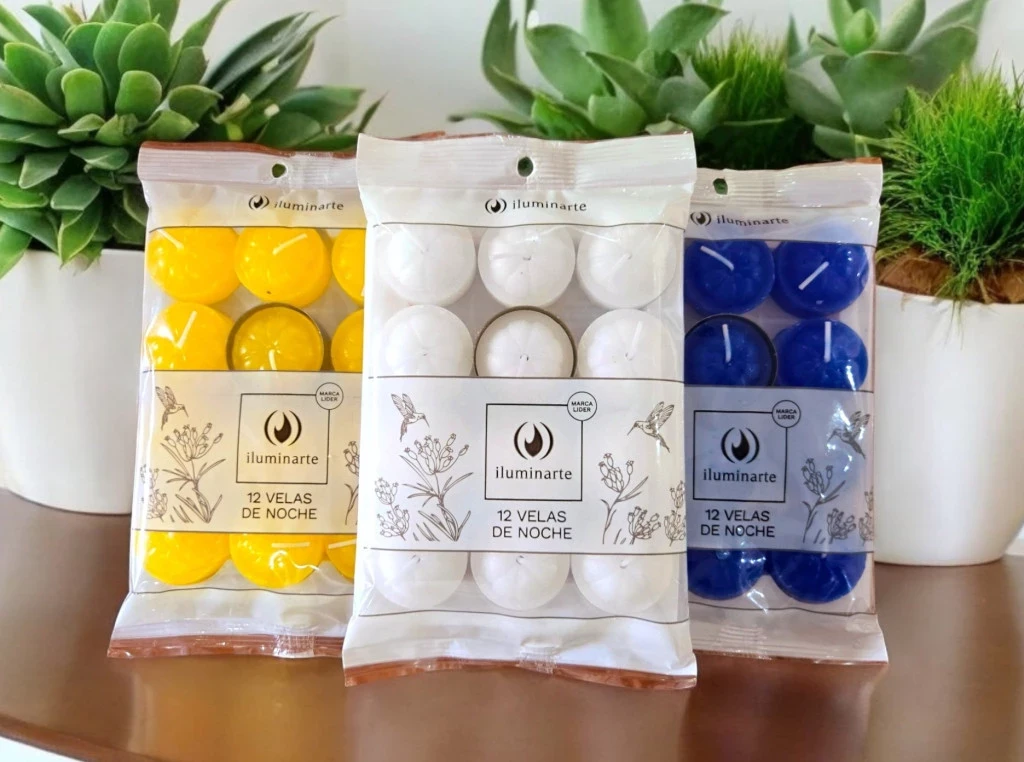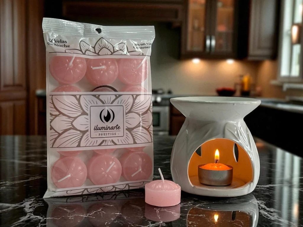 Las velas de noche de colores son perfectas para hornillos/aromatizadores, centros de mesa y rincones deco. Su llama es estable y el quemado es uniforme, aportando luz cálida y un toque visual que realza cualquier ambiente, ritual o evento.